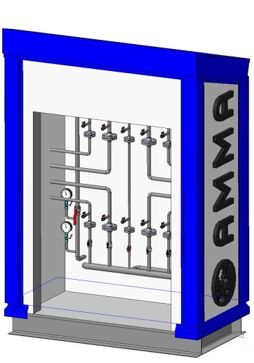 Блок-бокс коллекторная АММА-ББТ представляет собой здание блочно-модульного типа полной заводской готовности с комплектом коллекторов, запорно-регулирующей арматурой и приборами КИПиА.