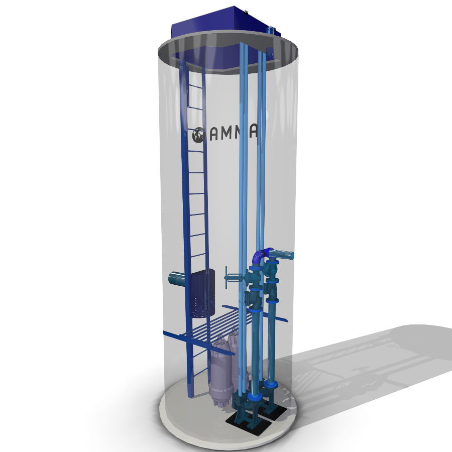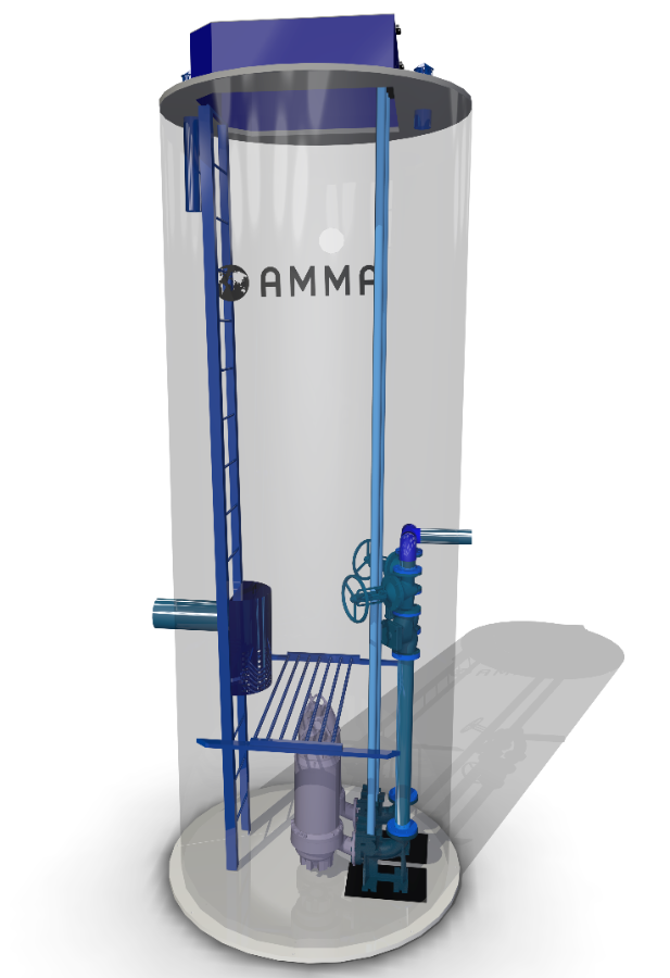 Канализационные станции КНС-АММА являются готовыми насосными станциями и предназначены для сбора и дальнейшего перекачивания дренажной воды, сточных вод, а также дождевой воды.