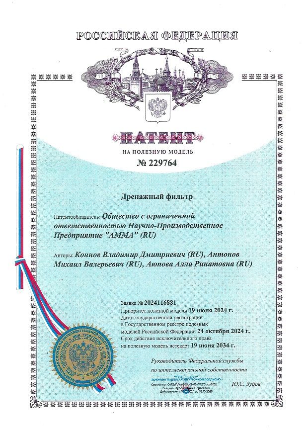 патент на полезную модель дренажный фильтр
